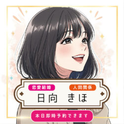 ![]() 宮司薫先生 | 2026.4/12 | Tさま | セッションありがとうございました! 初めての男性カウンセラーさんだったので、どんな感じなんだろう?と若干ドキドキしていたんですが(^O^)落ち着いた、穏やかな声だったので安心して話すことが出来ました☆ なかなか1歩が踏み出せず足踏みしてた所にテコ入れするのが恋愛面も動かす鍵になりそうだったので、とにかく、小さくてもいいから1歩を踏み出します! |