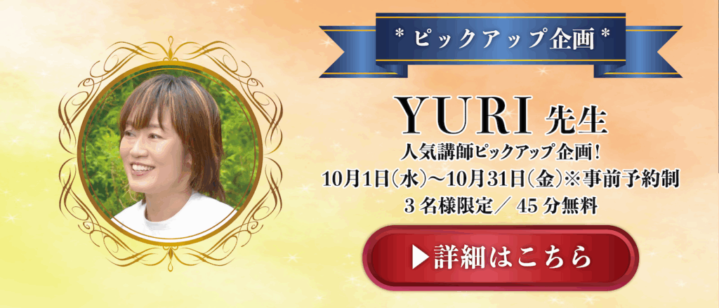 ![]() YURI先生 | 2025.10/19 | Hさま | 今回もYURIさんとお話できて嬉しかったです。 何もしなくていいと言われた時、とても心が軽くなったので、今の私には何もしないが正解なんだと思いました。 自分がずっと不足から行動していたことにも気づけてよかったです。 セッションを受けて、たくさん学んだからこその苦しみが少しずつなくなっていきそうです。 YURIさんの発する優しくて穏やかな周波数がとても心地よくて、私もそうなりたいと思いました。 また機会があればよろしくお願いいたします。 |